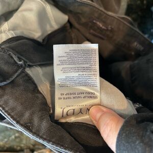 Tie waist and trouser style version of Marilyn Straight jeans. Lots of stretch. No signs of wear. They are intentionally faded in look. See pics for measurements