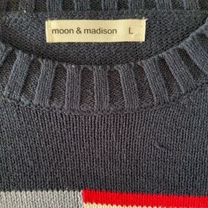 Moon& Madison Navy Blue Flag cropped Sweater size L, Cotton blend, new no tag
