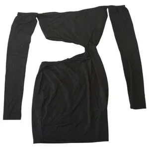 MEEK Womens Small Edgy Black Cutout Off-Shoulder Mini Dress Long Sleeve