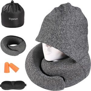 Travel Pillow - Hooded Neck Pillow Airplane, Memory Foam Pillow for Plane, Offic