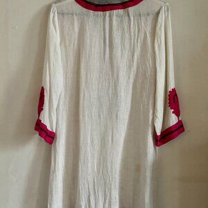 Calypso St. Barth WHITE Linen w/ Embroidered Design 3/4 Sleeve Tunic Top, Sz M