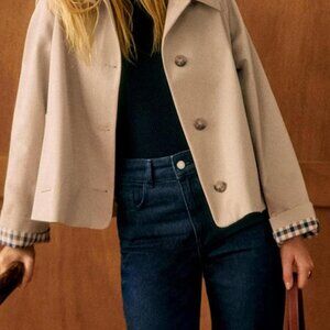 Women Oversize Trench Coat Plaid Lining Lapel Button Down Casual Crop Jacket Out