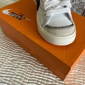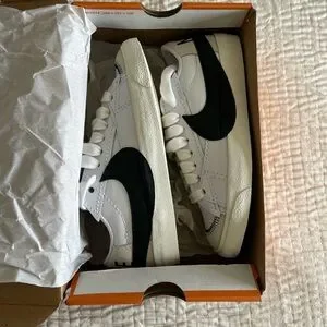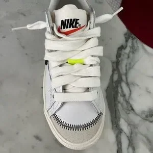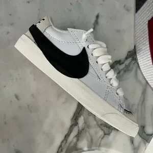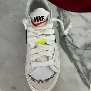 Brand NEW IN BOX! Classic Nike Blazer Low '77 Jumbo sneakers in white with a striking black jumbo nike swoosh. With suede toe box with red Nike swoosh on front flap with a striking neon yellow detail on the laces! Super trendy and comfortable. Women’s size 7. Perfect gift!