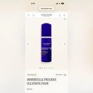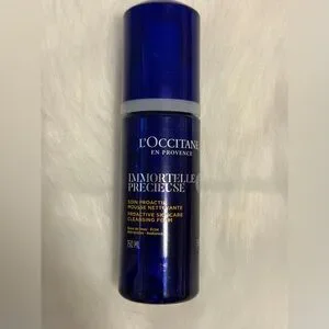 Revitalize your skin with L'OCCITANE's Immortelle Precious Cleansing Foam. Deep blue bottle. Gently cleanses and refreshes.