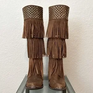 Old Gringo Triple Fringe Alsie Tall Knee w/ Zipper Western Boot 7 B