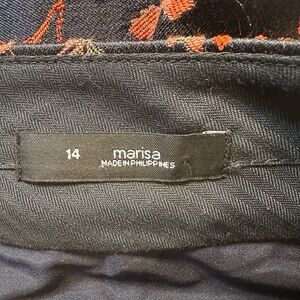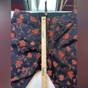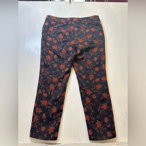 LOFT Marisa Fit Floral Dress Pants Size 14 Navy & Red Tapestry Brocade