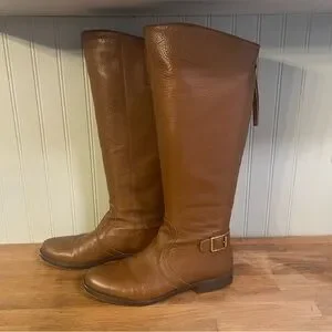 Tan Leather “Carlana” Boots from Franco Sarto. Size: 10M. Back Zipper. 1” Heel. Shaft Height is 16” and Calf Circumference is 16.5”. Great Condition with Light Wear.