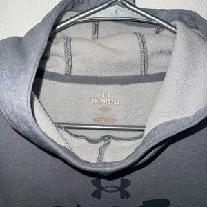 Comfortable gray hoodie with bold Under Armour logo. Perfect for casual wear.