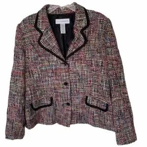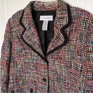 Vintage Sag Harbor colorful plaid woven wool blend tailored blazer.