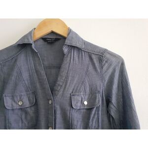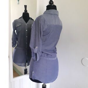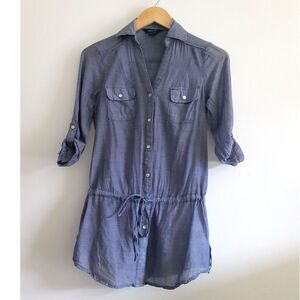 Paper Tee 100% Cotton Light Chambray Drawstring Waist Button TShirt Tunic Dress Size Small