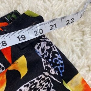 This is a BEAUTIFUL Size 1X SOFT SURROUNDINGS Black A Line Full Skirt with Orange Butterfly and Hibiscus Accents. Small zipper and still has little bag with extra button attached. It has been previously owned but it is in EXCELLENT CONDITION!!