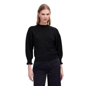 Madewell Black Merino Wool Mockneck Sweater S Puff Sleeve Ruffle Hem NWT