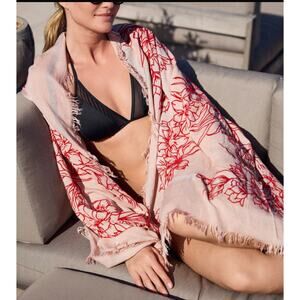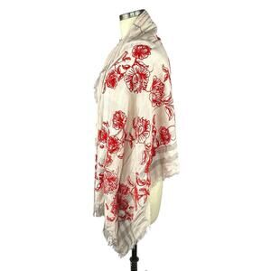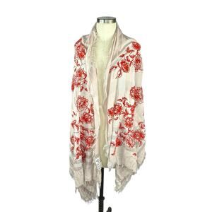 Vibrant red floral velvet fringe rectangular scarf from Luca by Leigh & Luca. Great used condition.