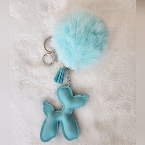 Add a playful touch to your accessories with this soft blue beaded balloon dog keychain. Featuring a fluffy pom pom, it's perfect for adding charm to your bag or keys.