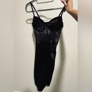 This black soft corset dress is perfect for a night out look. It’s a perfect cocktail dress with a side slit.