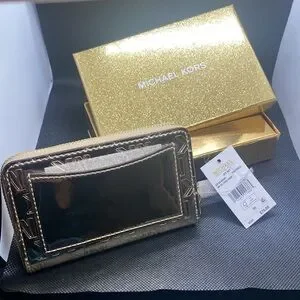 ⭐️MICHAEL KORS⭐️Pale Gold Jet Set Small Zip Around Card Case In Gift Box/NWT