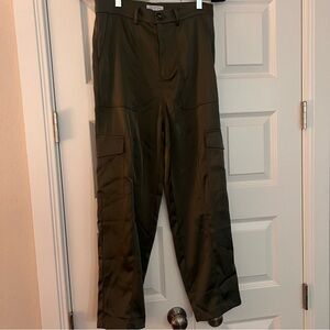 Chic dark green cargo pants with a tie waist. Ideal for casual wear. Does have the original belt.