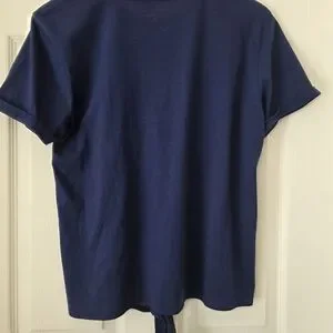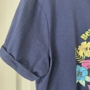 Navy tee with colorful floral and pink truck design. Ideal for casual wear.
