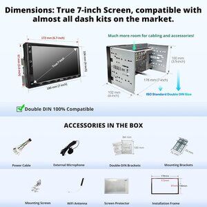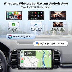 [Wireless Carplay & Wireless Android Auto]: This double din car stereo are compatible with both wired and wireless Carplay and android auto. Use Bluetooth and Wifi to connect your phone to the car radio, you can have access to your phone's music, navigation, messages, phone calls and other features while driving. And our Carplay screen for car also support voice assistant, free your hands, provides you with a safer, more comfortable driving experience.