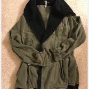 💚 Free People Slouchy Utility Jacket. Army Green w/ Black Accents & hood. XS 💚