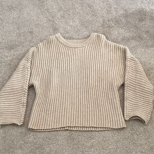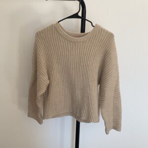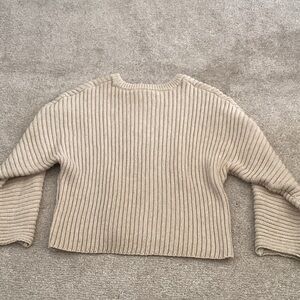 Elevate your wardrobe with this elegant beige ribbed sweater. Perfect for layering and versatile for any occasion.
