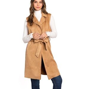 Love Tree Faux Suede Light Layering Trench Vest Women's Tan Sleeveless Coat