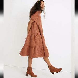 Madewell Quilted Aidy Square-Neck Puffed Sleeve Tiered Midi Dress Warm Umber