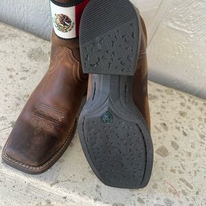 Comfortable tan leather cowboy boots with cushioned insole. Ideal for all-day wear.