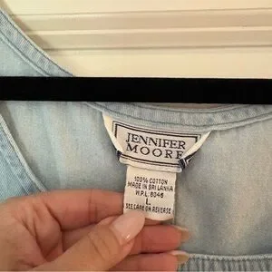 Vintage Jennifer Moore Women’s 100% Cotton Light Blue Denim Maxi Dress