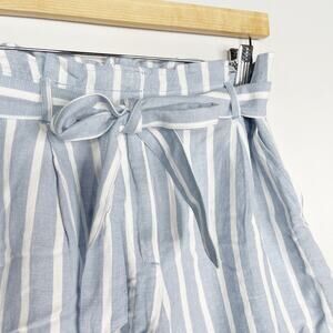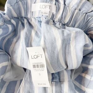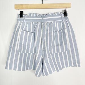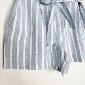 New LOFT Small Blue White Paperbag Shorts in Stripe Tie Waist Belt Cotton Blend