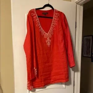 Lafayette 148 New York Red Tunic with White Embroidery