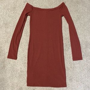 Forever 21 Rust Ribbed Button Down Off The Shoulder Long Sleeve Dress Size M