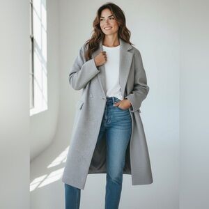 OAK + FORT Long Oversized Trench Coat Light Gray. 2 Buttons. Double breasted. Lined