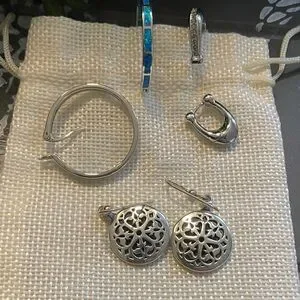 Elegant silver earrings with blue accents. Stylish and versatile. Perfect for any outfit. The filigree ones are Brighton , the other two I’m not sure of the brand but they were of high quality