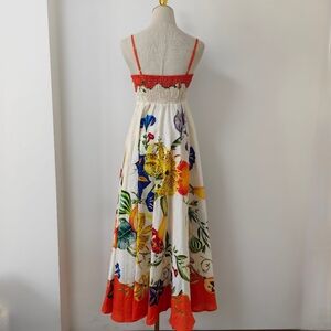 Never worn! Brand new. Vibrant floral print maxi dress by Alemais. Features a cream base with bold orange accents.