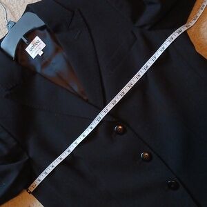 Sophisticated black blazer by Armani Collezioni. Ideal for formal events. Timeless elegance. See photos for details. Needs cleaned, otherwise, in great condition. Any questions, please leave a comment :)
