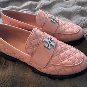 Durable black sole featuring Tory Burch branding. Ideal for comfort and style.
