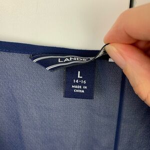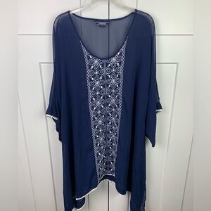 Lands End LARGE Sheer Swim Cover Kaftan Tunic Navy Embroidery Coastal