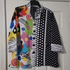 Stand out with this vibrant women's top featuring a unique abstract design. Perfect for adding a splash of color to your wardrobe.