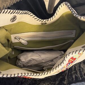 This is a Firenze Bella "Garbo" hobo bag with floral embroidery.