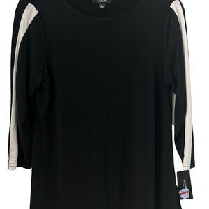 Alfani Petite Large Black Top with White Contrast Sleeves