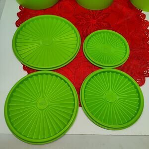 Vintage Tupperware servalier 4 pc Lime Apple Green Nesting Canister set w Lids