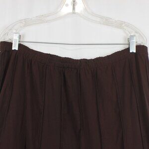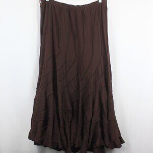 Brown long skirt. Ruffles and line pattern. Elastic waistline, Light/Medium weight. Great as an under skirt to add more volume. Bottom of the skirt has more fabric, making it more 'fluffy'. Perfect for twirling and movement.