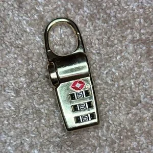Stylish Tumi lock with combination feature. Ensures security for your luggage.