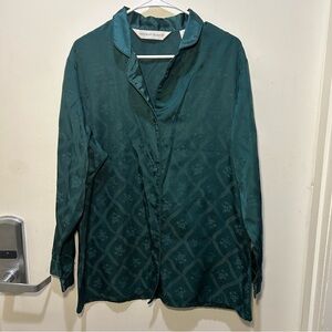 Victoria’s Secret 90s Vintage Green Floral Button Up Long Sleeve Pajama Top