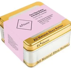 Experience the luxurious Pure Shea Butter Everyday Formula, infused with the calming essence of lavender. This moisturizer comes in a stylish gold and purple tin, perfect for nourishing your skin daily.
