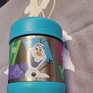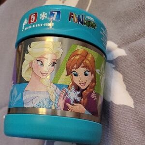 Aqua Thermos container with secure lid. Keeps food at desired temperature.