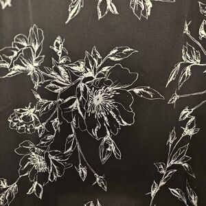 Chic pencil skirt with elegant floral design. Perfect for office or evening wear. Classic black and white colors. Lining and slit in the back.