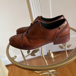 Women's Pyrgos PIKOLINOS Wingtip Slipon Oxfords, rich cognac leather, size EU39