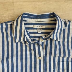 Lightweight 100% cotton blue and white striped button down from Madewell. Oversized style, could fit a size Large as well. Excellent used condition.